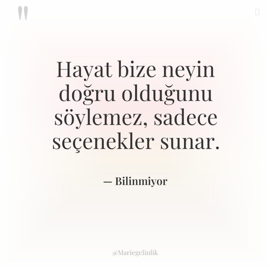 Hayat bize neyin doğru olduğunu söylemez, sadece seçenekler sunar.