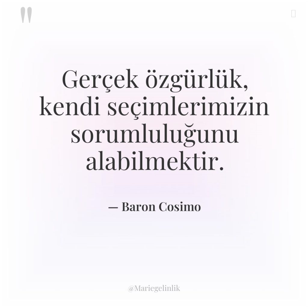 Gerçek özgürlük, kendi seçimlerimizin sorumluluğunu alabilmektir.