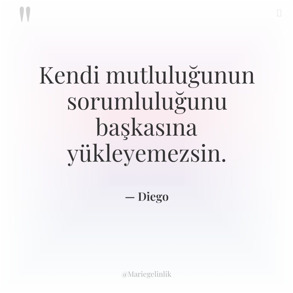 Kendi mutluluğunun sorumluluğunu başkasına yükleyemezsin.