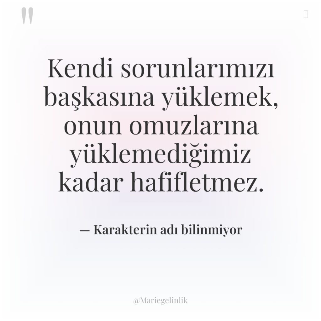 Kendi sorunlarımızı başkasına yüklemek, onun omuzlarına yüklemediğimiz kadar hafifletmez.