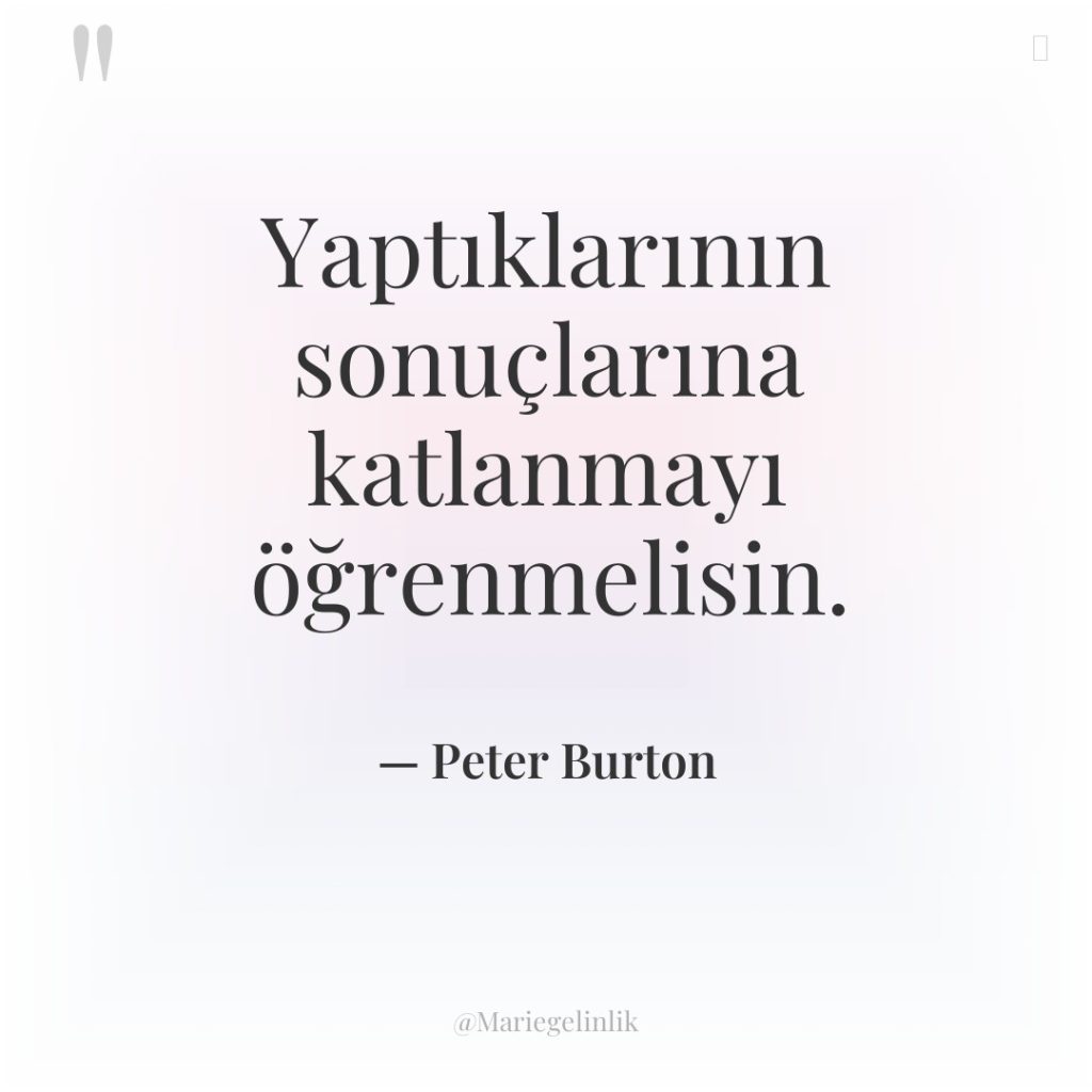 Yaptıklarının sonuçlarına katlanmayı öğrenmelisin.
