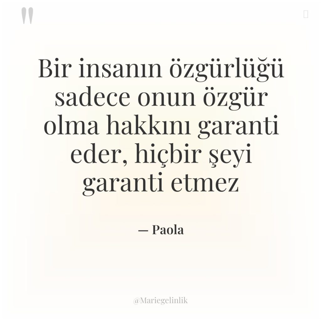 Bir insanın özgürlüğü sadece onun özgür olma hakkını garanti eder,…