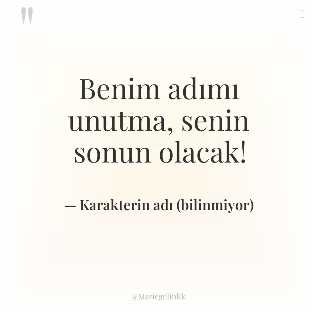 Benim adımı unutma, senin sonun olacak!