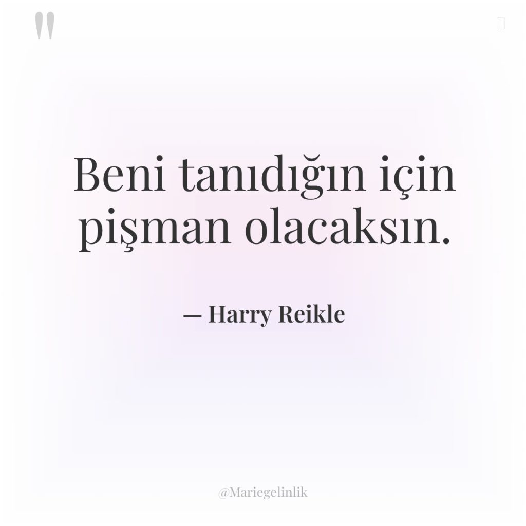 Beni tanıdığın için pişman olacaksın.