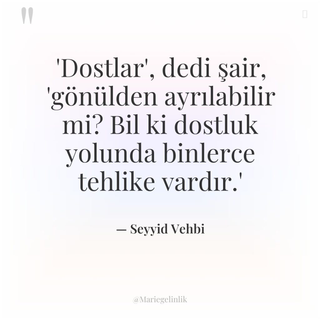 ‘Dostlar’, dedi şair, ‘gönülden ayrılabilir mi? Bil ki dostluk yolunda…