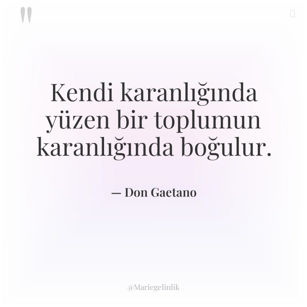 Kendi karanlığında yüzen bir toplumun karanlığında boğulur.