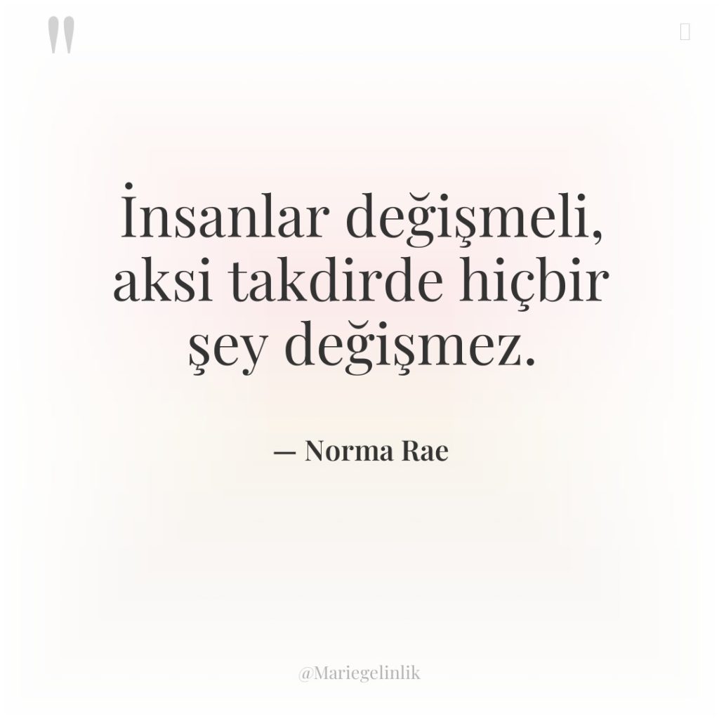 İnsanlar değişmeli, aksi takdirde hiçbir şey değişmez.