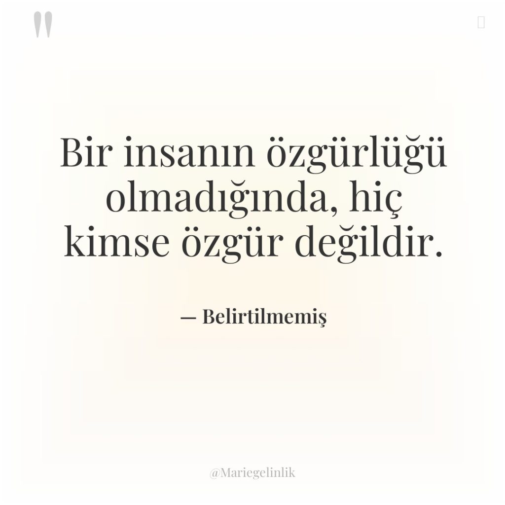 Bir insanın özgürlüğü olmadığında, hiç kimse özgür değildir.