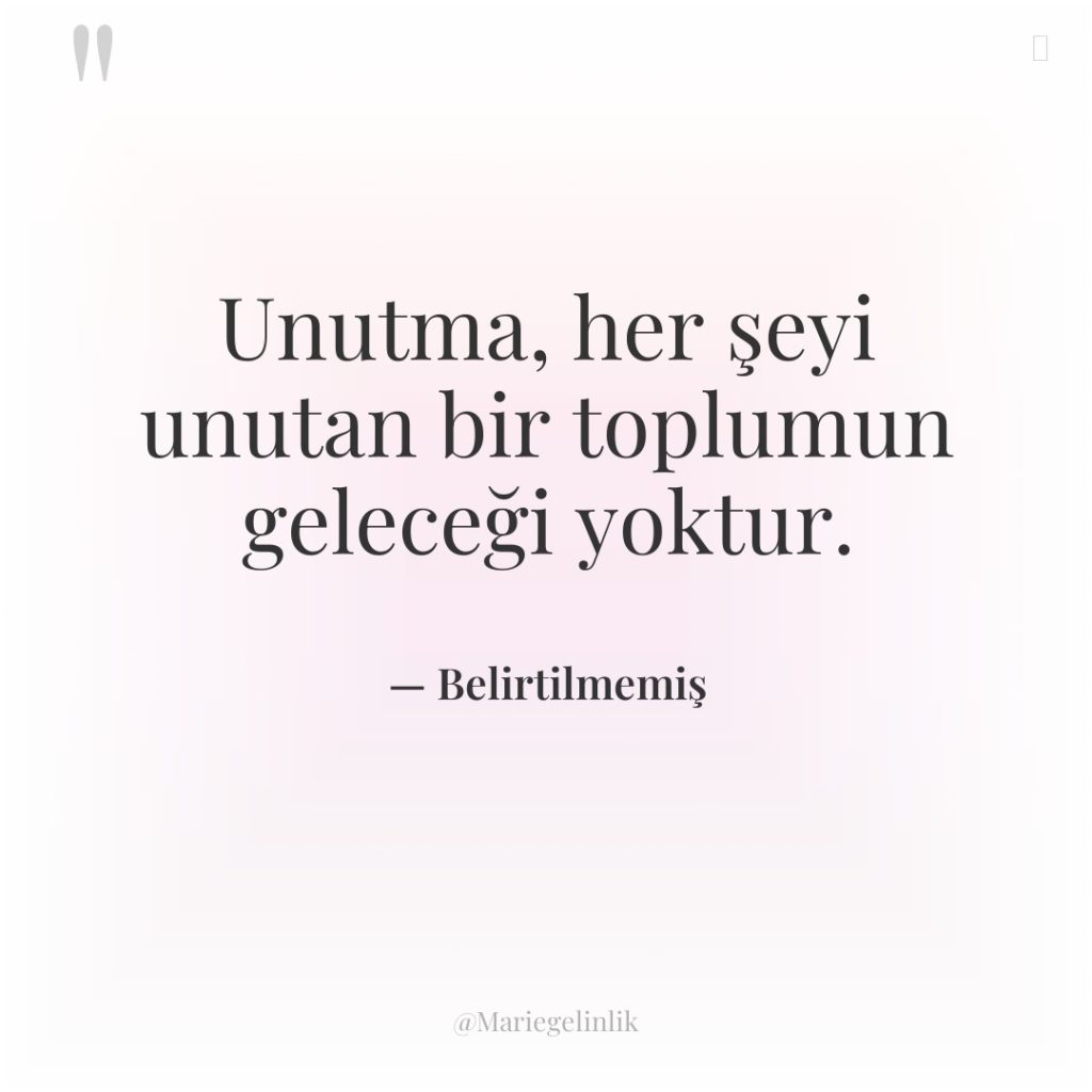 Unutma, her şeyi unutan bir toplumun geleceği yoktur.