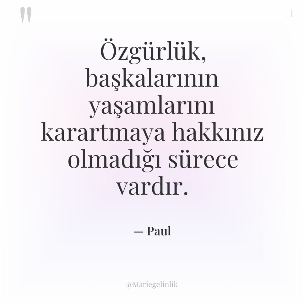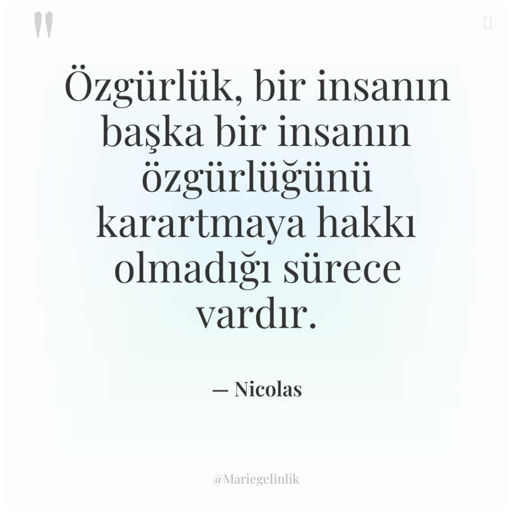 Özgürlük, bir insanın başka bir insanın özgürlüğünü karartmaya hakkı olmadığı…