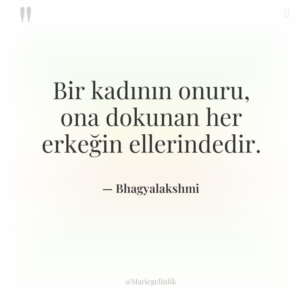 Bir kadının onuru, ona dokunan her erkeğin ellerindedir.