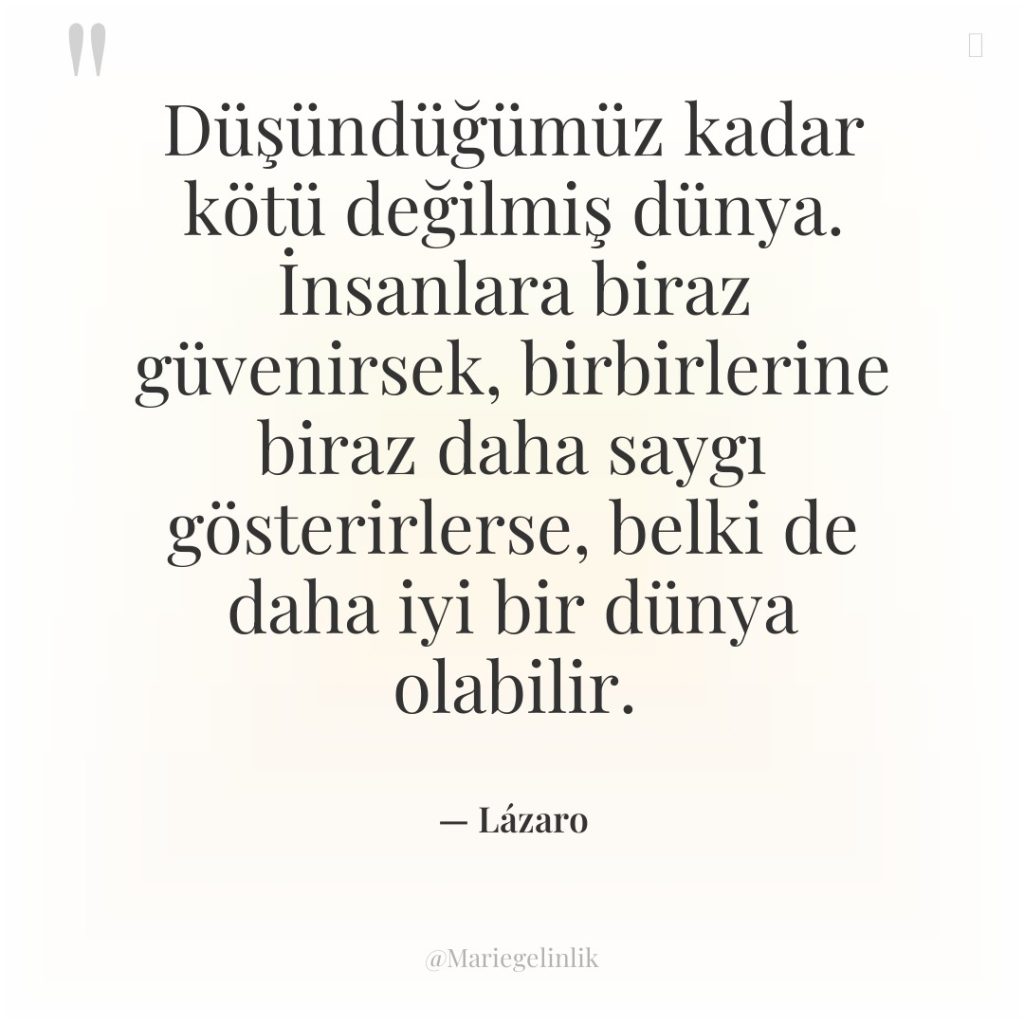 Düşündüğümüz kadar kötü değilmiş dünya. İnsanlara biraz güvenirsek, birbirlerine biraz…