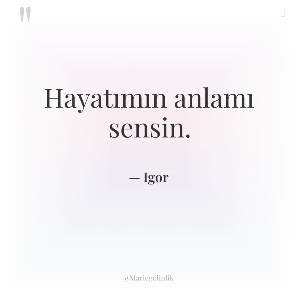 Hayatımın anlamı sensin.