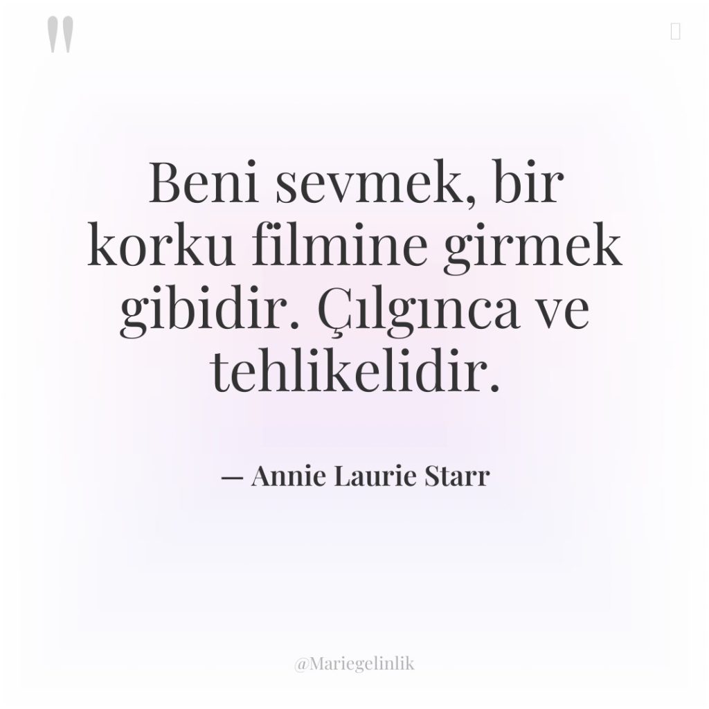 Beni sevmek, bir korku filmine girmek gibidir. Çılgınca ve tehlikelidir.