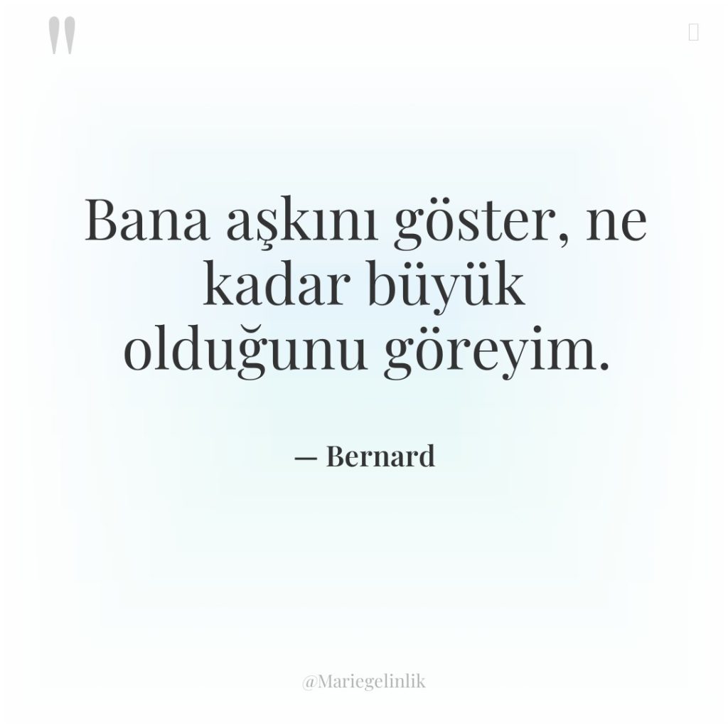 Bana aşkını göster, ne kadar büyük olduğunu göreyim.