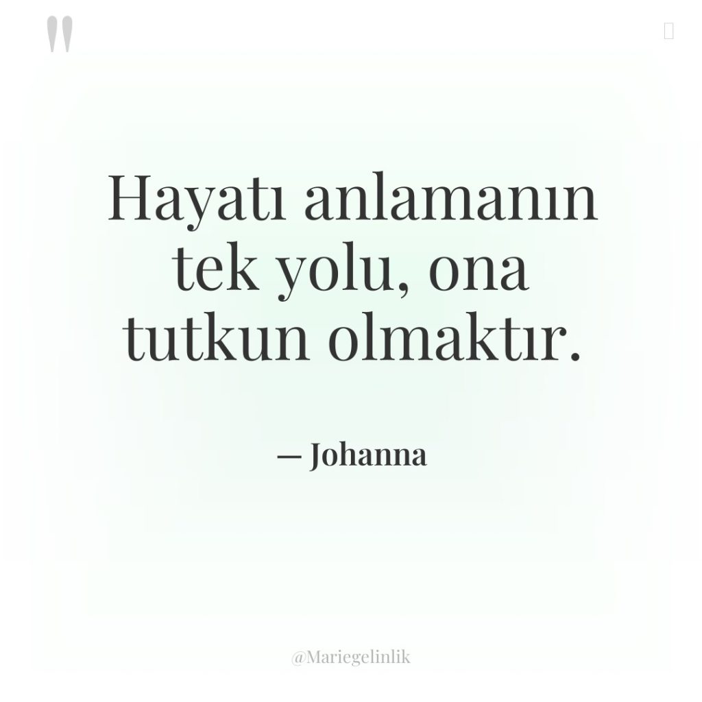 Hayatı anlamanın tek yolu, ona tutkun olmaktır.