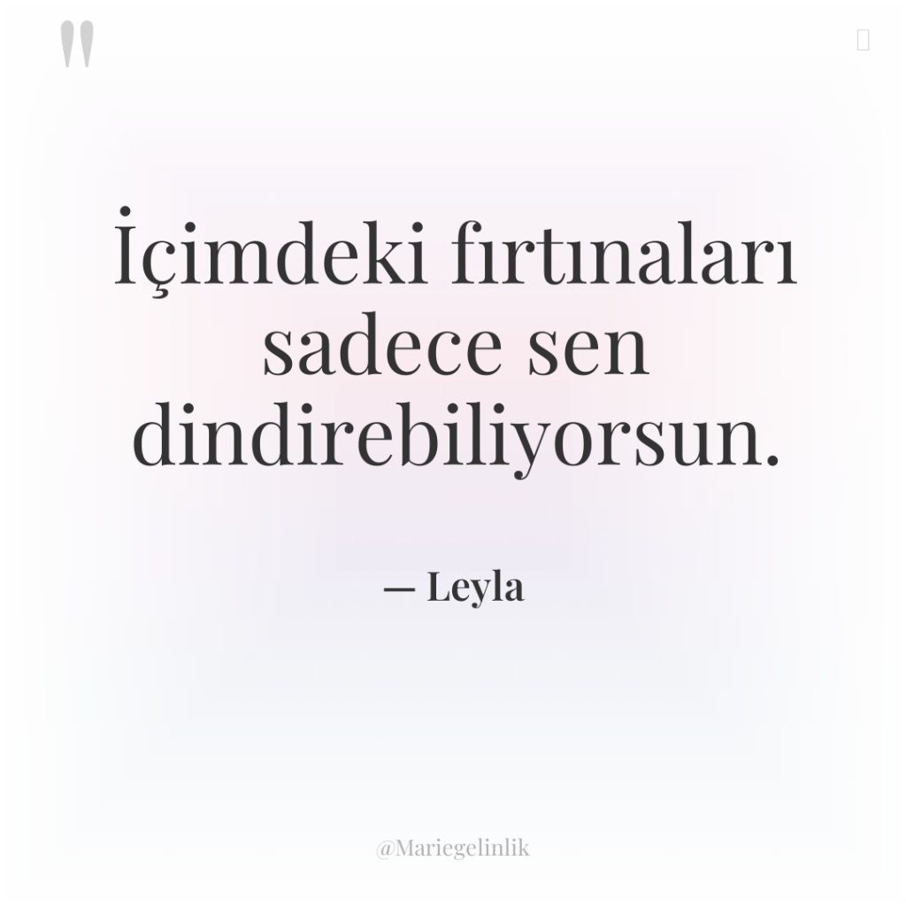 İçimdeki fırtınaları sadece sen dindirebiliyorsun.