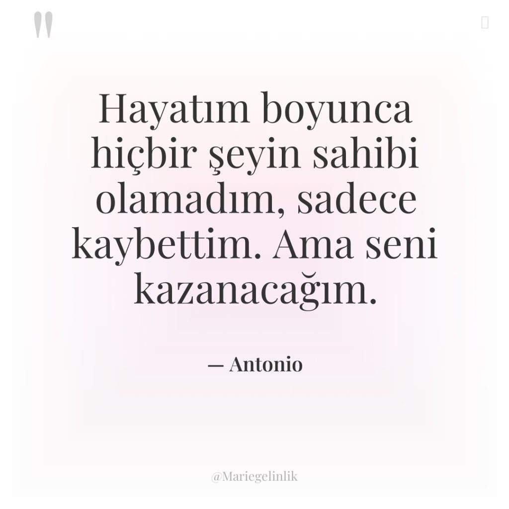 Hayatım boyunca hiçbir şeyin sahibi olamadım, sadece kaybettim. Ama seni…