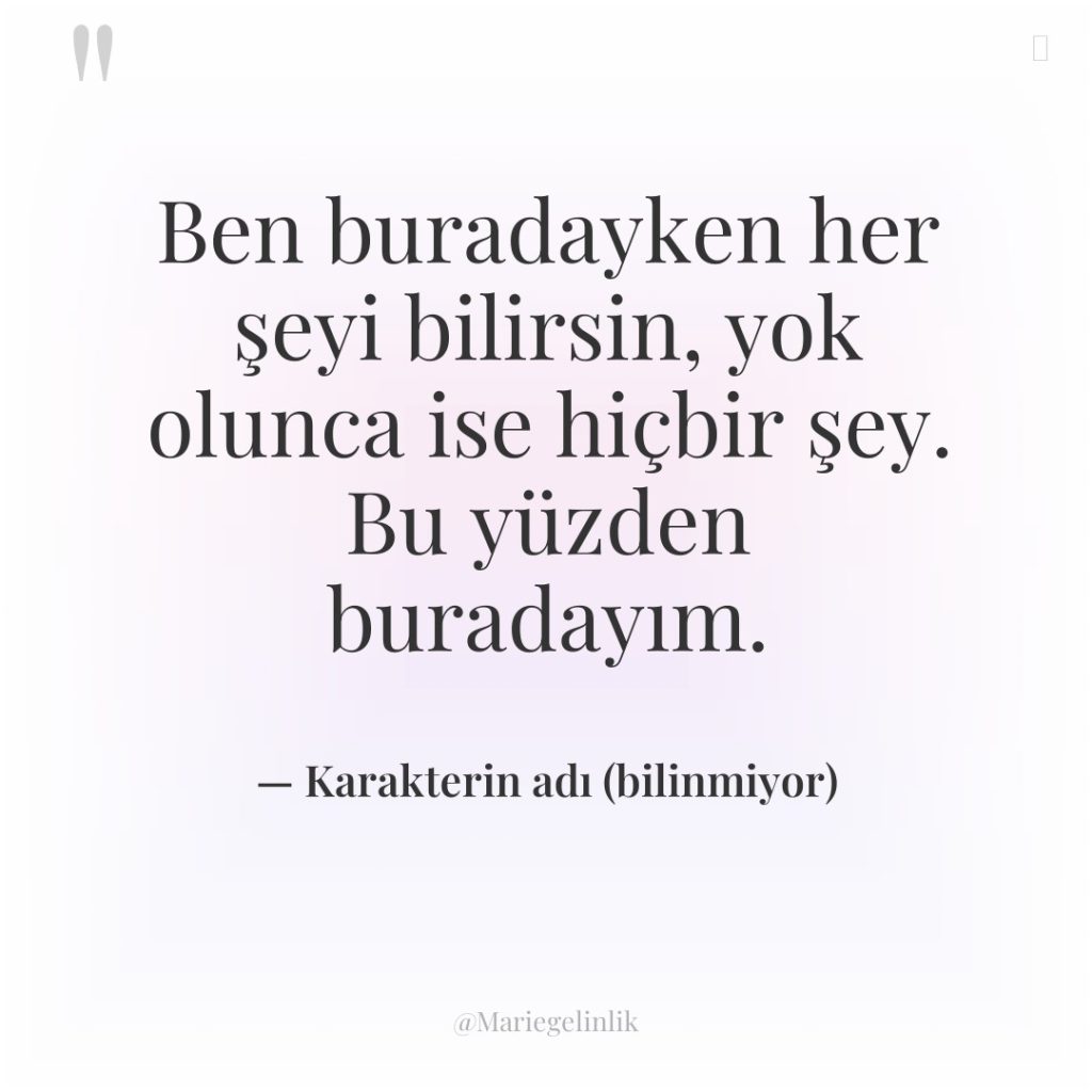 Ben buradayken her şeyi bilirsin, yok olunca ise hiçbir şey….