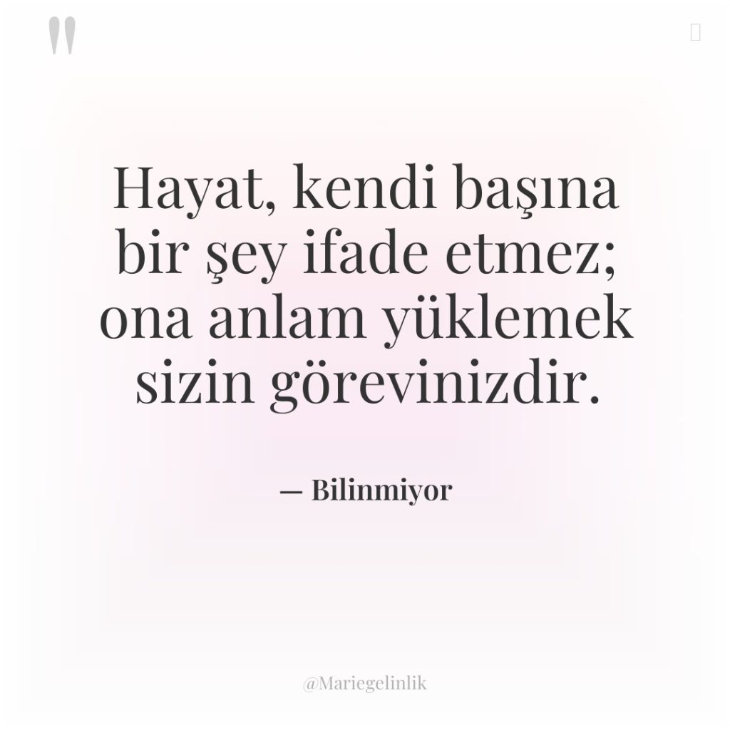 Hayat, kendi başına bir şey ifade etmez; ona anlam yüklemek…