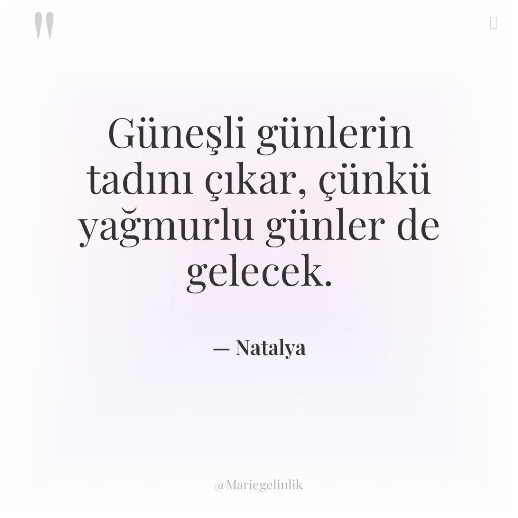Güneşli günlerin tadını çıkar, çünkü yağmurlu günler de gelecek.
