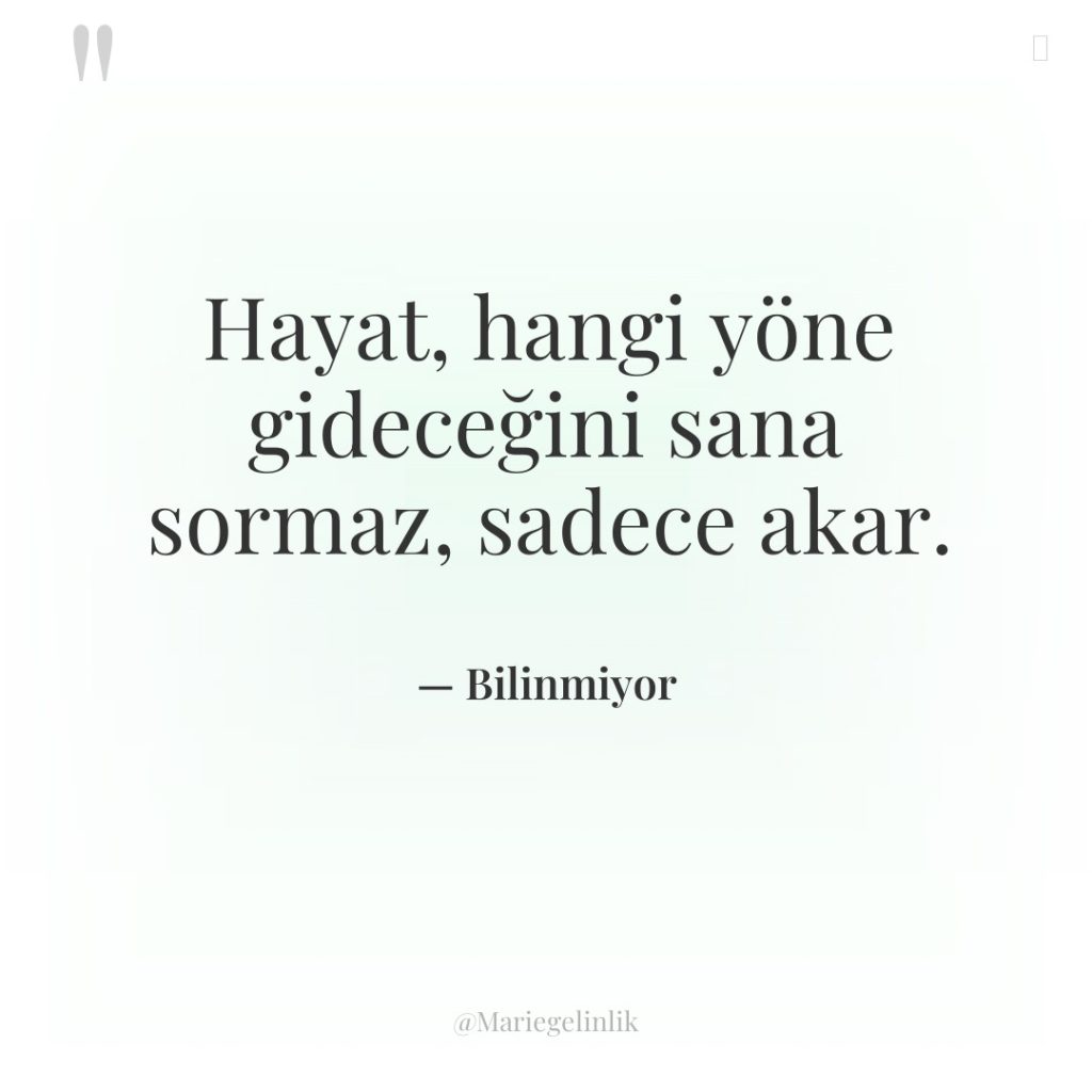 Hayat, hangi yöne gideceğini sana sormaz, sadece akar.