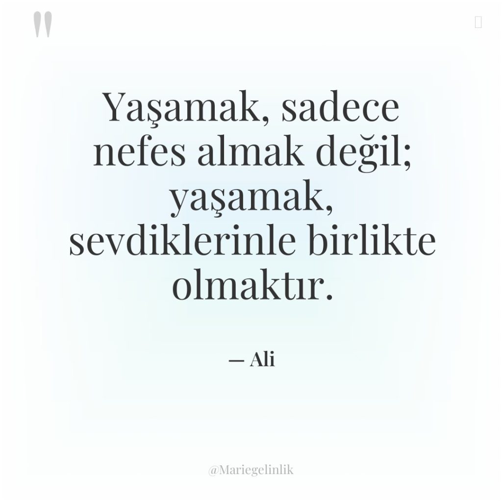 Yaşamak, sadece nefes almak değil; yaşamak, sevdiklerinle birlikte olmaktır.
