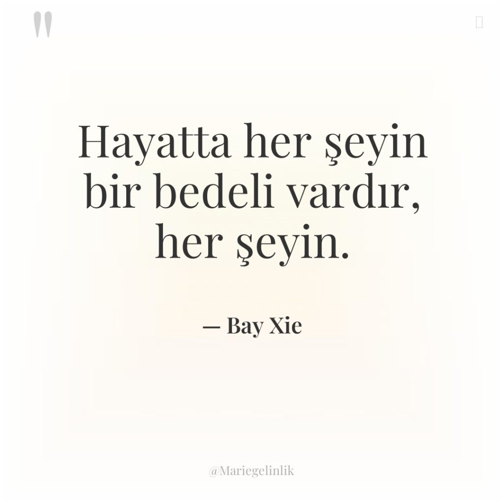 Hayatta her şeyin bir bedeli vardır, her şeyin.