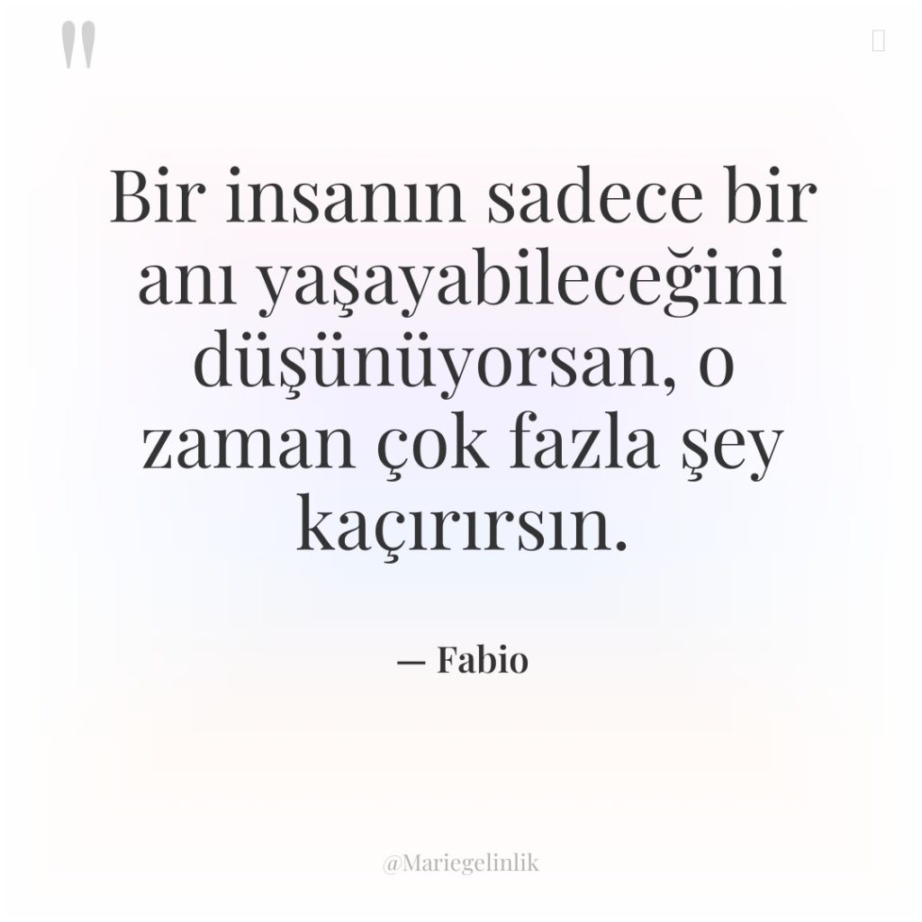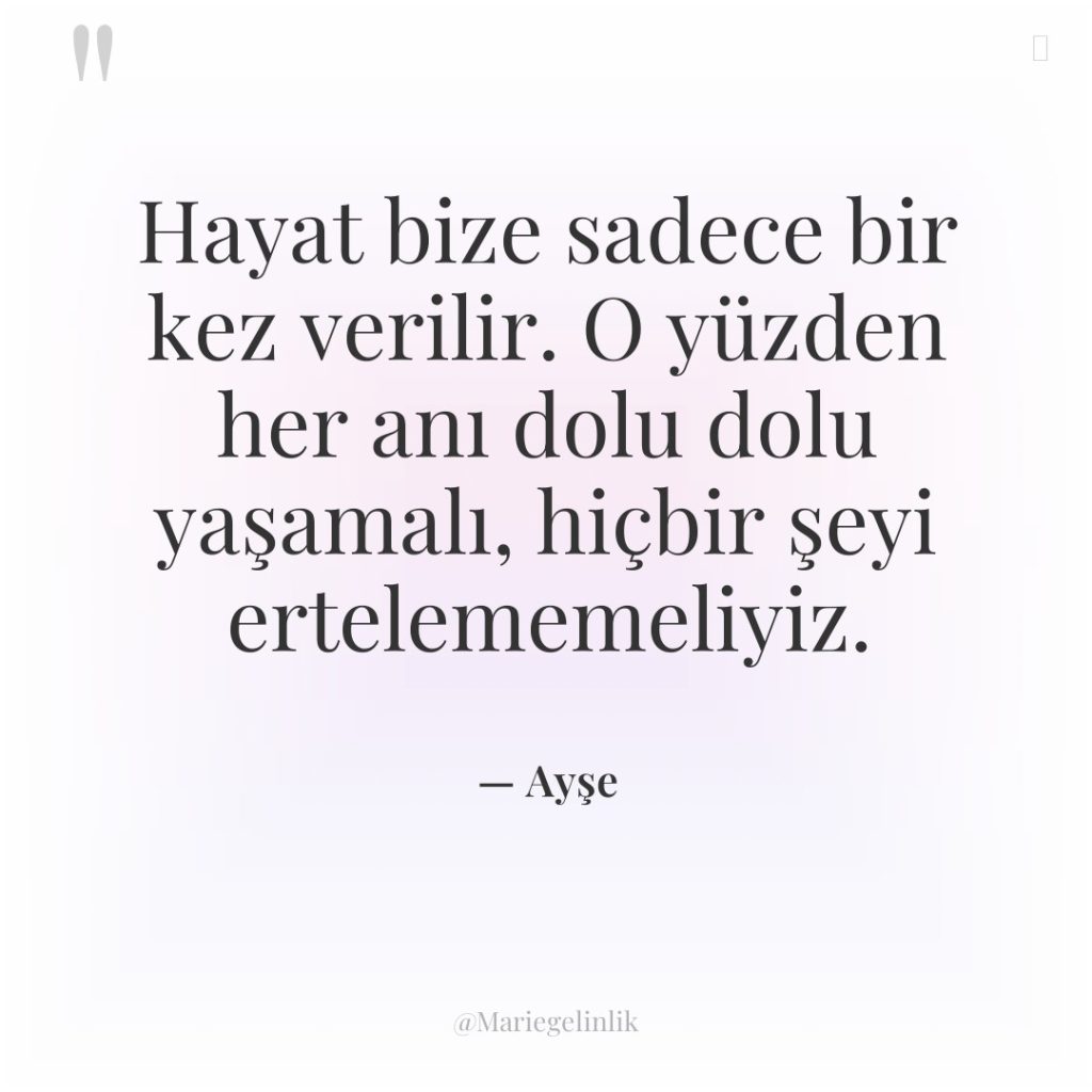 Hayat bize sadece bir kez verilir. O yüzden her anı…