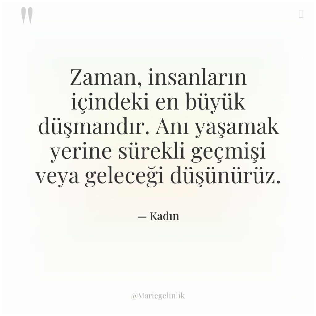 Zaman, insanların içindeki en büyük düşmandır. Anı yaşamak yerine sürekli…