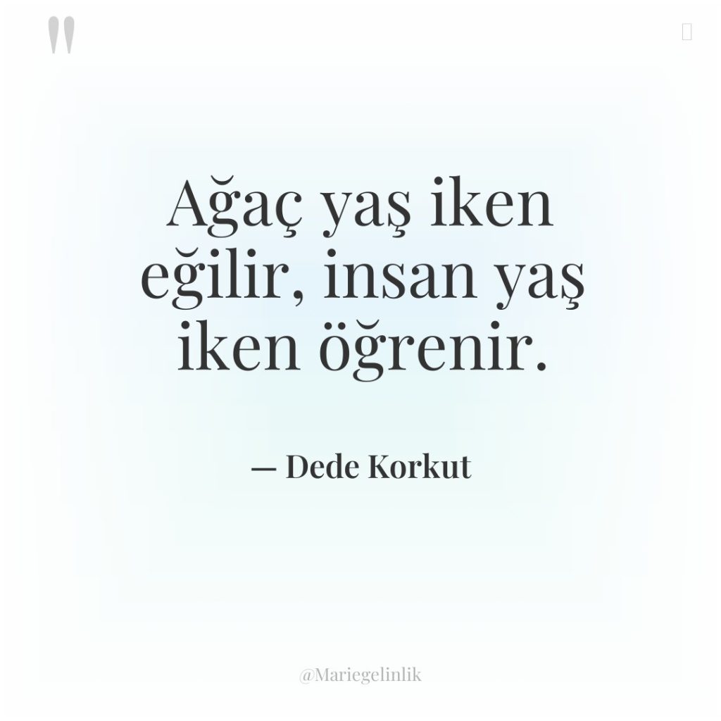 Ağaç yaş iken eğilir, insan yaş iken öğrenir.