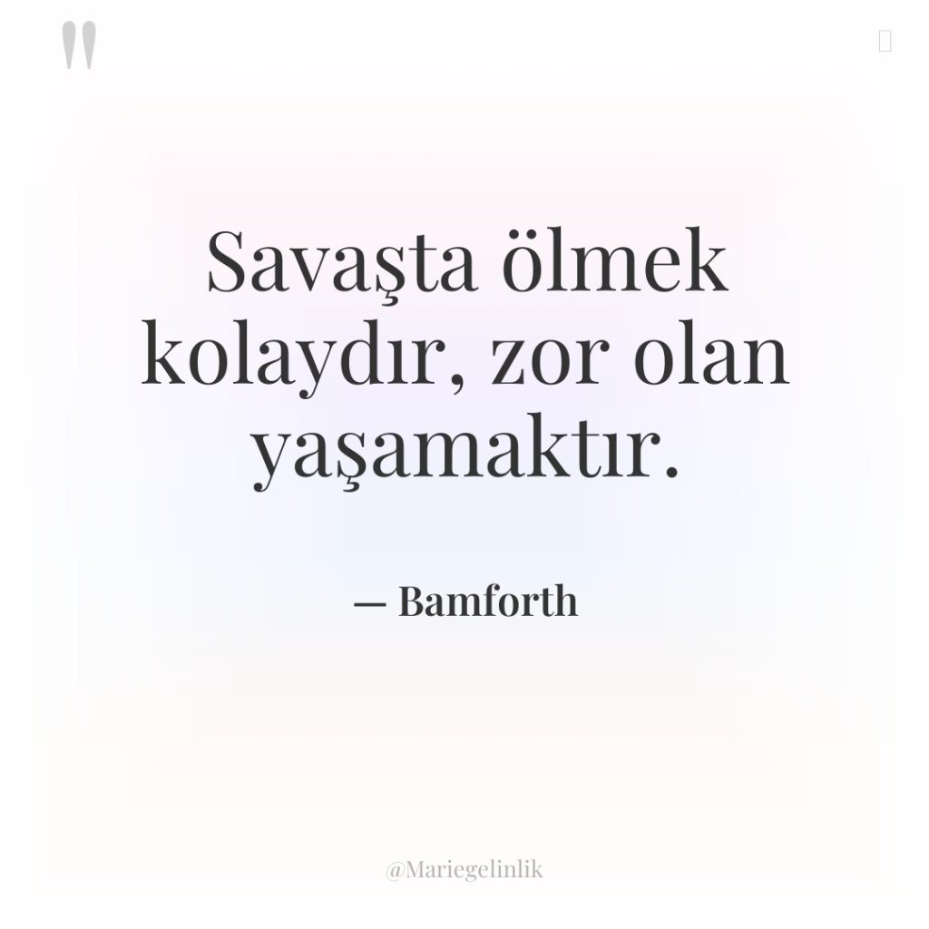 Savaşta ölmek kolaydır, zor olan yaşamaktır.