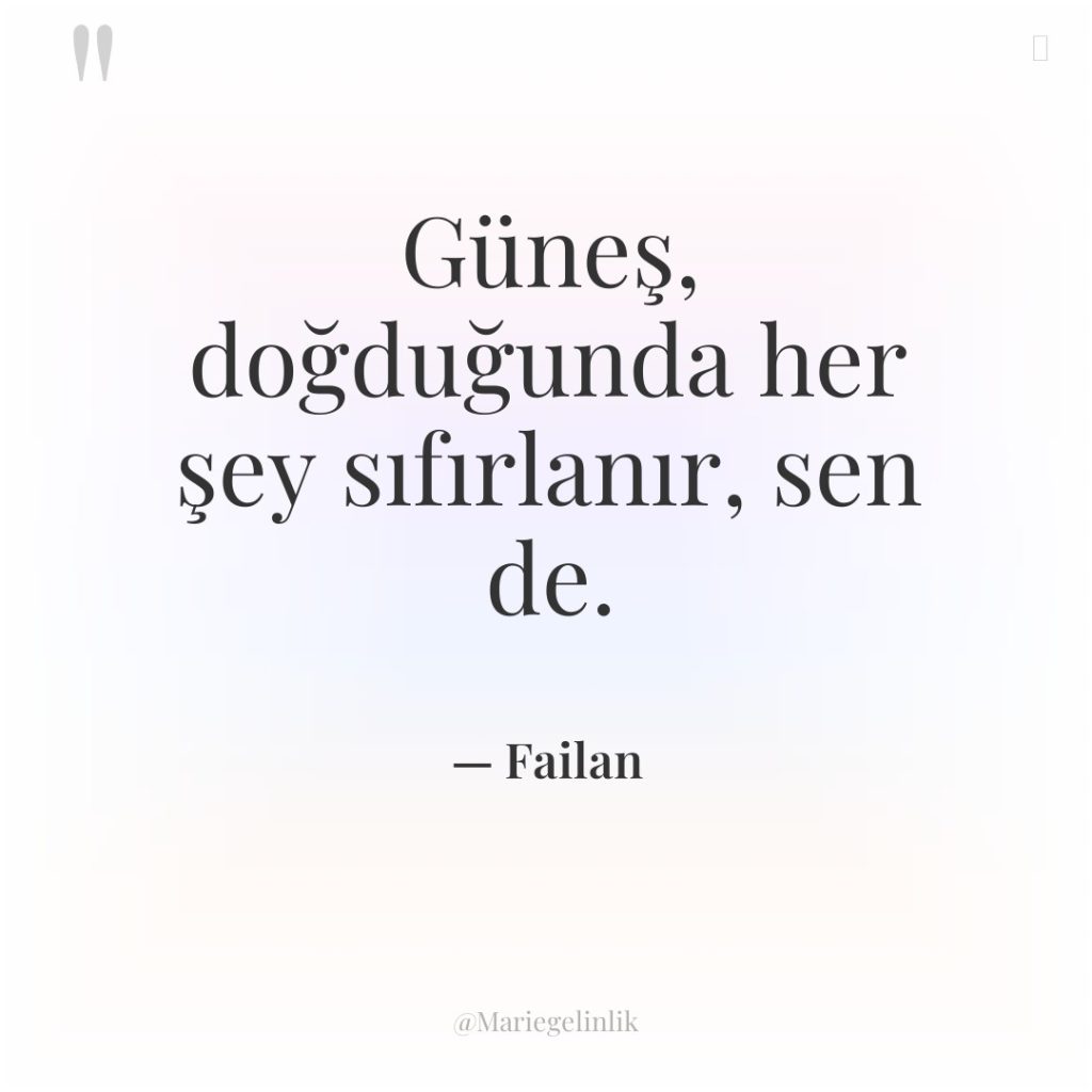 Güneş, doğduğunda her şey sıfırlanır, sen de.