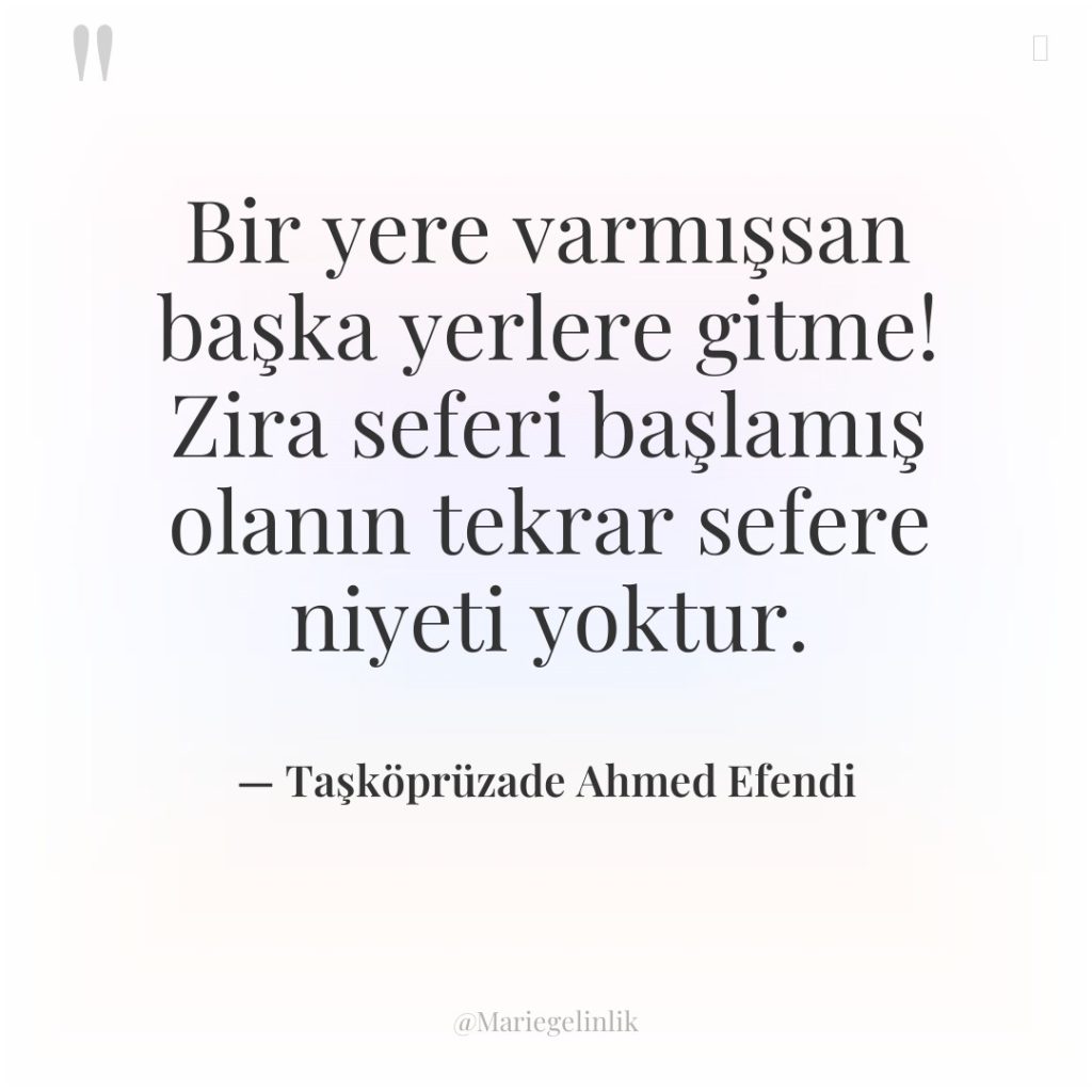 Bir yere varmışsan başka yerlere gitme! Zira seferi başlamış olanın…