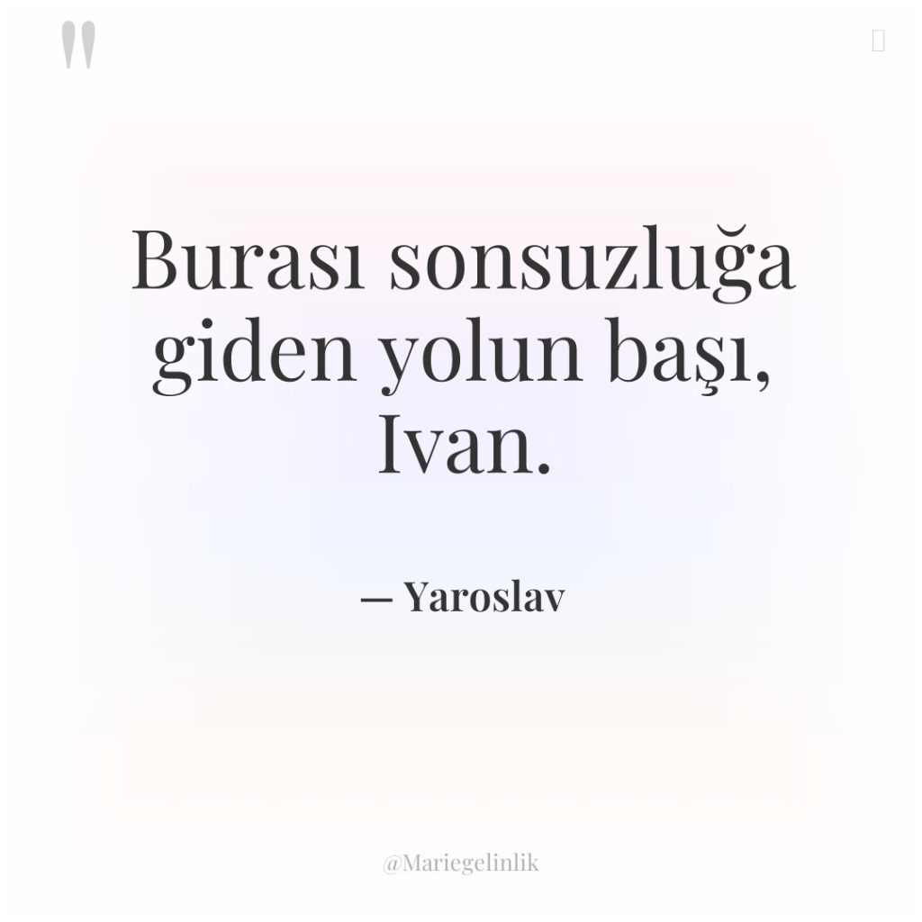 Burası sonsuzluğa giden yolun başı, Ivan.