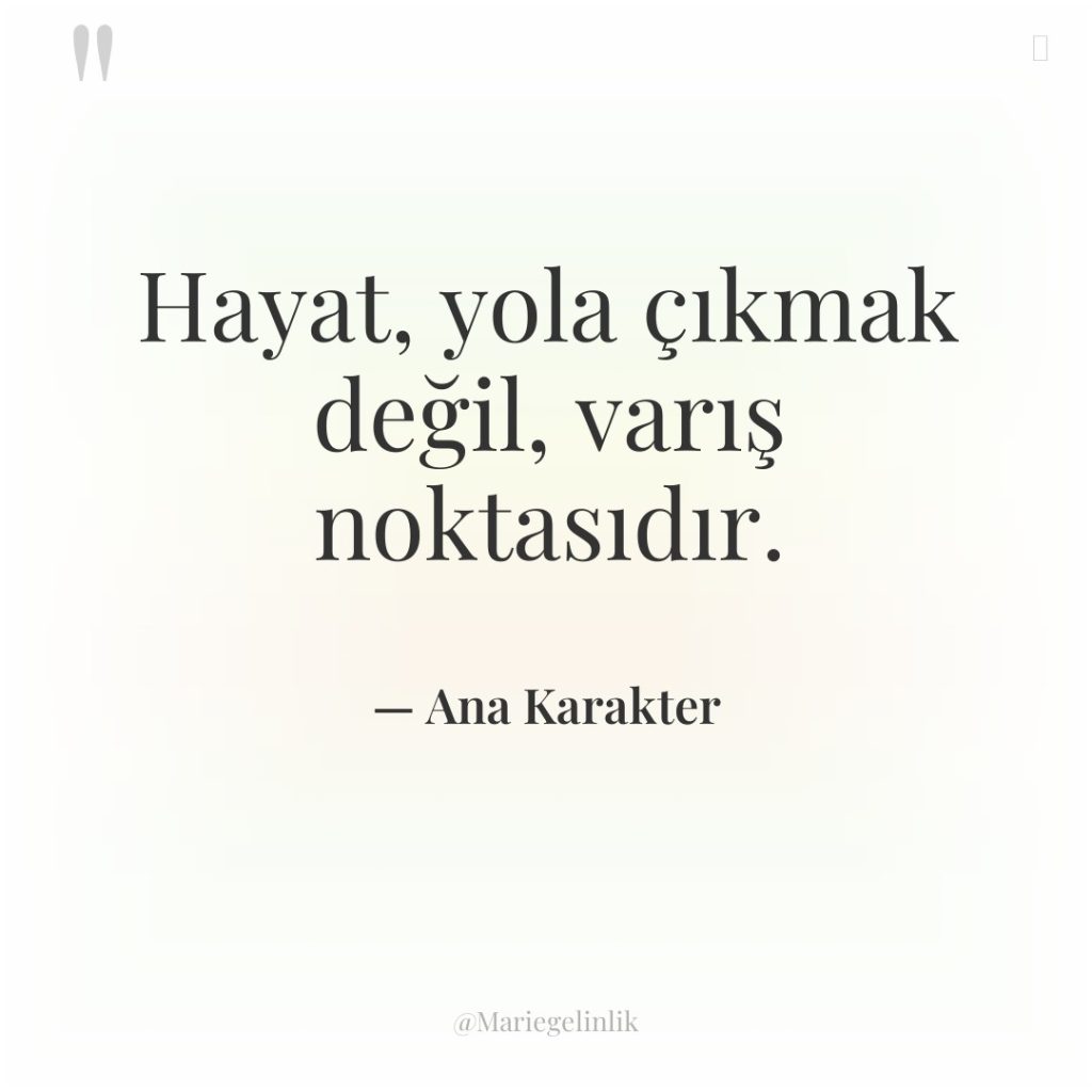 Hayat, yola çıkmak değil, varış noktasıdır.